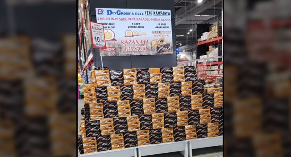 EN İYİ MARKALAR EN İYİ FİYATA 4 bin metrekare alan üzerinde faaailyet gösteren DevGross Toptan Market, en kaliteli markaları, en iyi fiyatlarla müşterileriyle buluşturuyor. ÇEKİLİŞSİZ KURASIZ ALTIN KAZANMA ŞANSI Devgross Toptan Market şimdi de, Samsun'un yerli markası Selinay Helva ile birlikte başlattığı süper kampanya ile Samsun halkına çekilişsiz, kurasız altın kazanma fırsatı sunuyor. DevGross Toptan Market'te bu kulenin içinde 1 adet Cumhuriyet altını, 4 adet çeyrek altın ve 15 adet gram altın müşterileri bekliyor. İŞTE KAMPANYANIN DETAYLARI Devgross Toptan Market'ten 1 kg sade veya kakaolu Selinay Helva alarak kampanyaya katılabiliyorsunuz. Kampanyanın 1. aşamasında 15 adet gram altın dağıtan Devgross, kampanyanın 2. aşamasında hediyeleri büyüterek, 1 adet Cumhuriyet altını, 4 adet çeyrek altın ve 15 adet gram altın dağıtmaya devam ediyor. Bugüne kadar 8 talihlinin Devgross’a gelerek altınlarını aldığını belirten yetkililer, "Siz de Devgross’ta altın kazanma fırsatını kaçırmayın" çağrısında bulundu.
